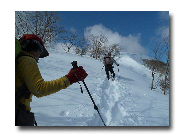 ****** 9合目から山荘まではトレースを外して新雪の中を登りました *******